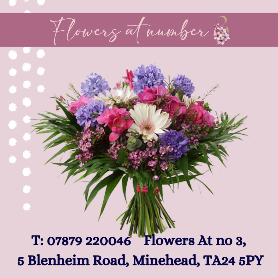 We are introducing Minehead's new modern florists 'Flowers At No.3' who are based at 5 Blenheim Road, Minehead, next door to us at Amanda-Louise Funeral Services; where their qualified florists create fresh and artificial flowers). They are our preferred florist services for our families, providing beautiful flowers for funerals and sympathy, but also for all occasions. Check out their own website at www.flowersatno3.co.uk or ring 07879-220046